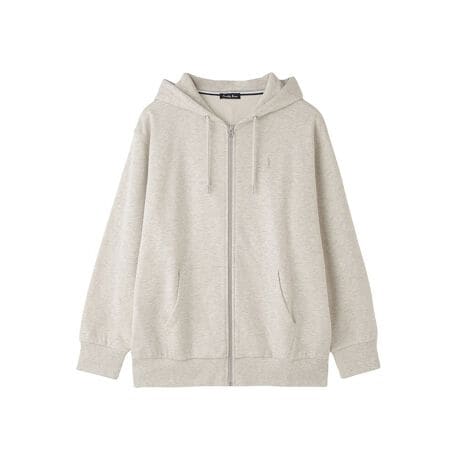 程よい厚みで着心地もよい裏毛パーカは通年着られる綿100%。大きめシルエットなのでアウター感覚で着ることも可能です。左胸にシルバーの女神刺繍入り。