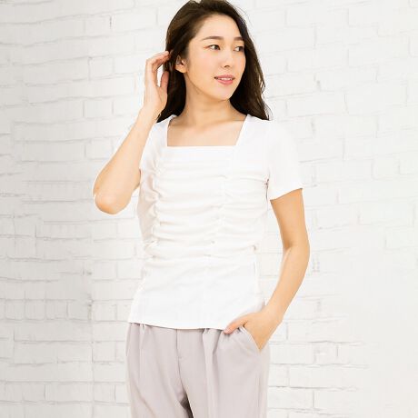伸縮性が良く、柔らかく肌触りの良いスムース素材のカットソーです。