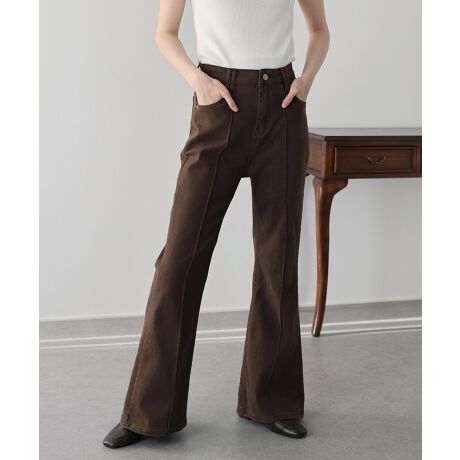ラインを綺麗に見せるセンターシームをあしらったデニムフレアパンツ。