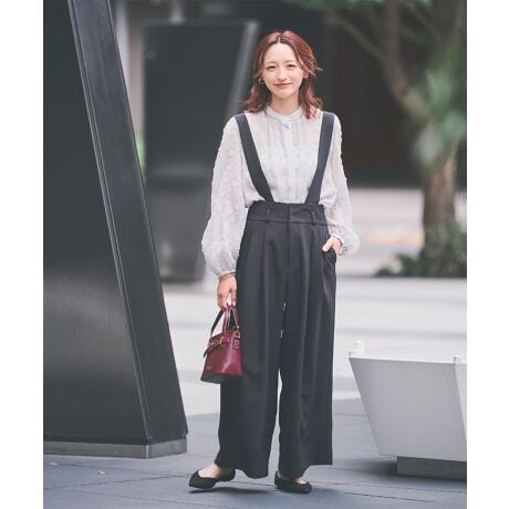脚長効果抜群のサスペンダー付き2wayワイドパンツ