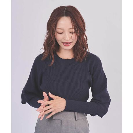 79509820ボリュームスリーブリブニット