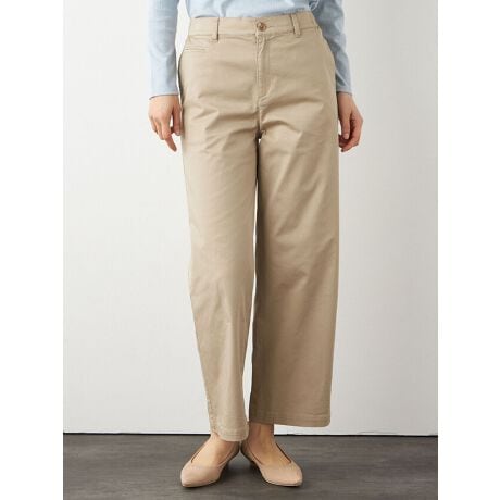 [型番:6251400][型番:6251400]きちんと感とストレッチ感を備えた春に似合うチノパンツ。洗い加工で少しヴィンテージライクな雰囲気に仕上げました。可愛らしいコインポケットがアクセント。ウエストの後ろはゴム仕様なので楽に着用いただけます。綺麗なシルエットのセミワイドパンツはデイリーに使え、幅広いコーディネートに合わせられます。