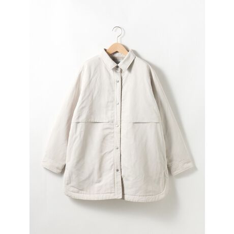 [型番:6251502][型番:6251502]グログラン組織生地で作った中綿のコート。前後身頃に重ねたアンブレラヨークがデザインのアクセントになっています。お尻周りもしっかりカバーする75着丈、薄い中綿を使用しているので暖かさがありながら軽い着心地となっています。冬から春の肌寒い季節にぴったりの1枚。撥水加工も嬉しいポイントです。