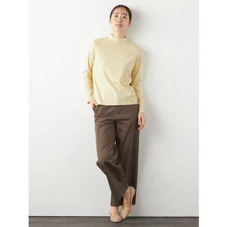 ピーチ感のある肌触りの良いカットソー素材を使用した、動きのあるリブテレコチビハイネックプルオーバー。程よい厚み、柔らかな肌触りと体のラインを目立たせないリブ編みが着心地抜群の1枚です。まだまだ寒い時期にやさしい着心地でインナーとして大活躍します。顔回りを明るくしてくれるカラー展開で春らしさをプラスしてくれます。