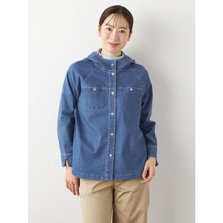 [型番:6251200][型番:6251200]6.8オンスのライトオンスデニムで仕立てたフーディタイプの羽織ブラウス。ストレッチが効いた着心地の良いストレスフリーな1枚。シルバーのメタルボタンがポイントです。ラフすぎない大人のカジュアルとして取り入れやすくインナーとしても春のアウターとしても季節も変わり目に長く活躍する便利なアイテムです。