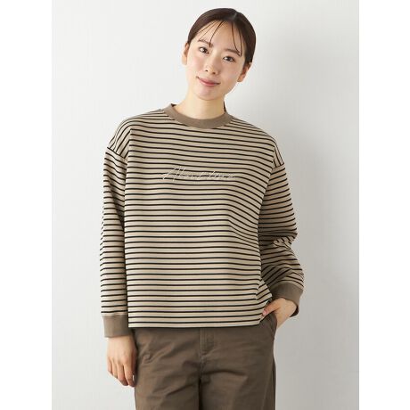 ストレッチボーダー刺繍プルオーバー
