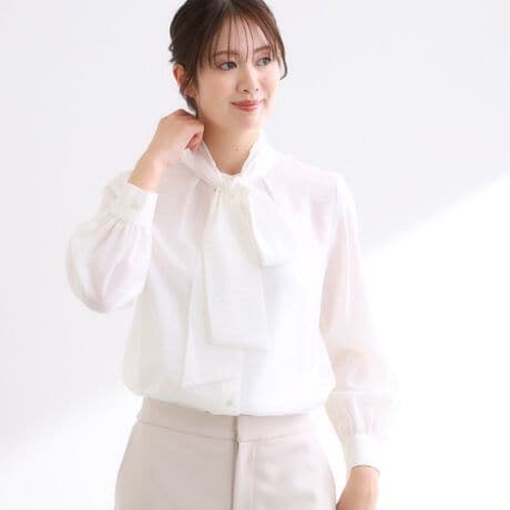 上品な存在感を放つボウタイ付きブラウス。