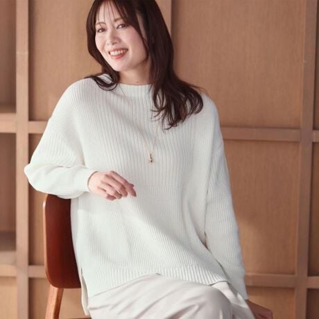 シンプルながらも着映えするデザインで、デイリーに活躍してくれるニットになっています。