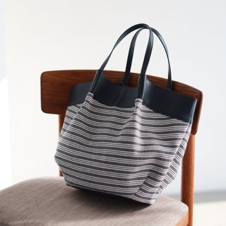 口元とハンドルに施したレザートリムがきちんと感をプラスし、カジュアルすぎない印象に仕上げました。