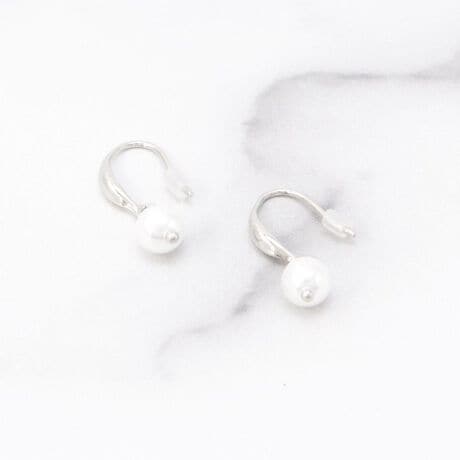 シンプルなカーブに樹脂パールが揺れるピアス。