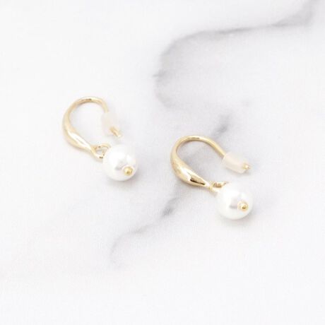 シンプルなカーブに樹脂パールが揺れるピアス。