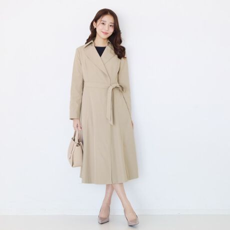 【スタイリングポイント】Aラインがキレイに見えるシルエット。前を閉めてワンピース風に着ていただくのがおすすめ。