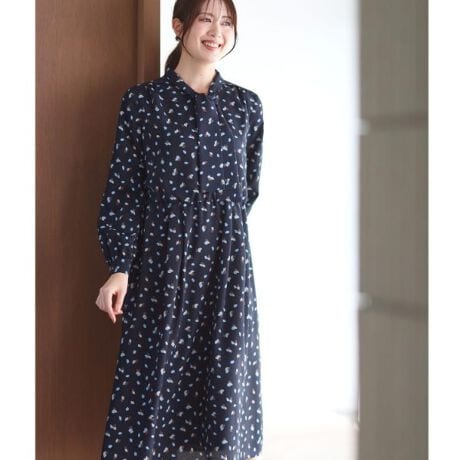 上品な雰囲気の花びらをインスピレーションしたプリントが目を惹くフェミニンなボウタイワンピース。