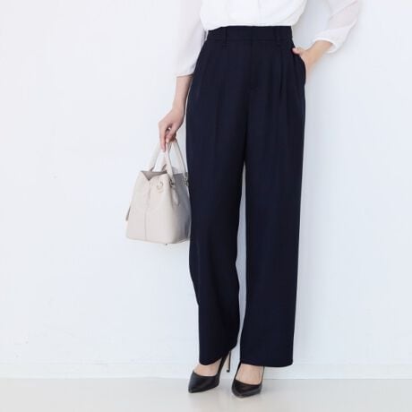 程良いワイドシルエットでジャケット、ニット等合わせやすいシルエットにしています。