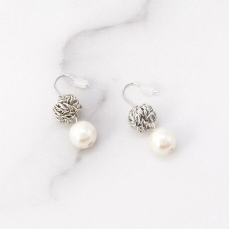 繊細なワイヤーに樹脂パールが揺れる個性的なピアス。