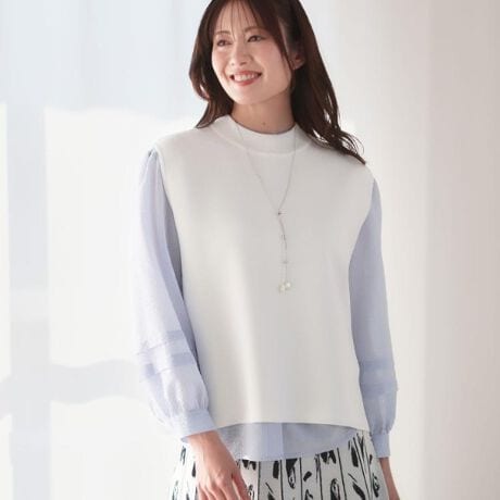 さらりとした風合いでロングシーズン着用でき、ベストとしてはもちろん、初夏にはフレンチスリーブトップスとしても活躍するアイテムです。