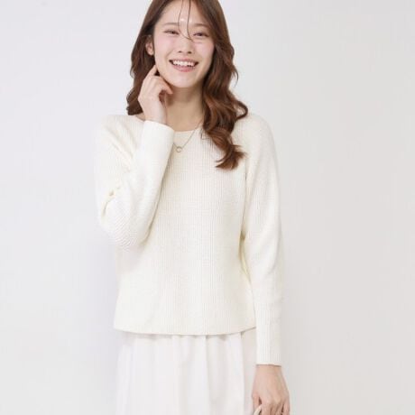 ふっくらとしたリリヤーン糸を使ったミドルゲージのニットトップス。