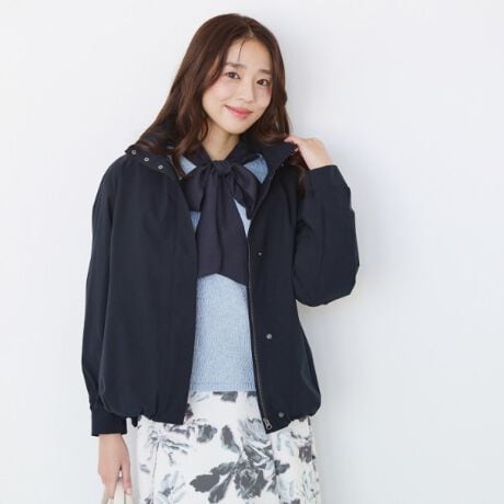 フードの取り外しができますのでスタンド衿の2WAY仕様で着ていただけます。