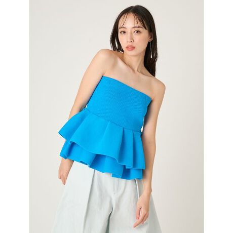 大胆なペプラムフリルが主役級の存在感を放つニットベアトップス。