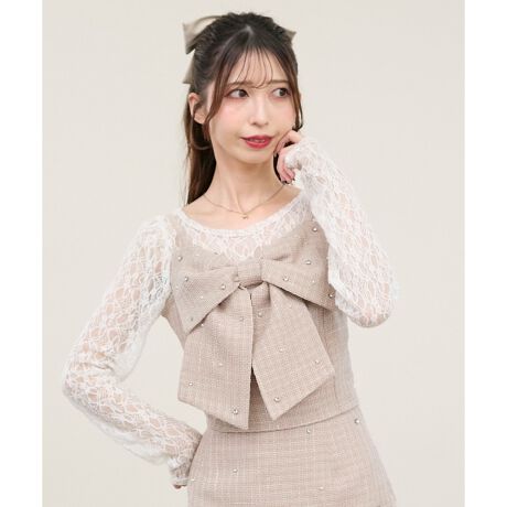 リボン部分に散りばめたビジューが、胸元を彩るビスチェ。