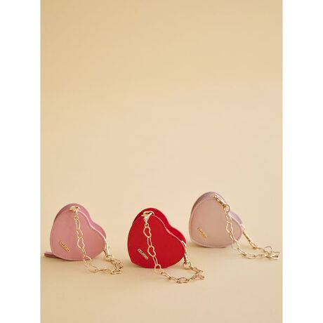 愛らしいハートシルエットのファスナー付きチャームポーチ。