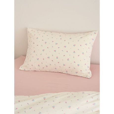小花柄、ストライプ柄、ハート柄の3種類から柄を選べる、春の新生活にぴったりなピローケースです。小花柄とストライプ柄のピローケースは、裏表で異なるリバーシブルのデザイン。春先にかけてちょうど良い柔らかな肌触りの生地を使用しています。色は小花柄のアイボリー、ストライプ柄のブルー、ハート柄のピンクと、ONLINE限定カラーとなるハート柄のライトグレーの全4色。ギフトにもおすすめのアイテムです。