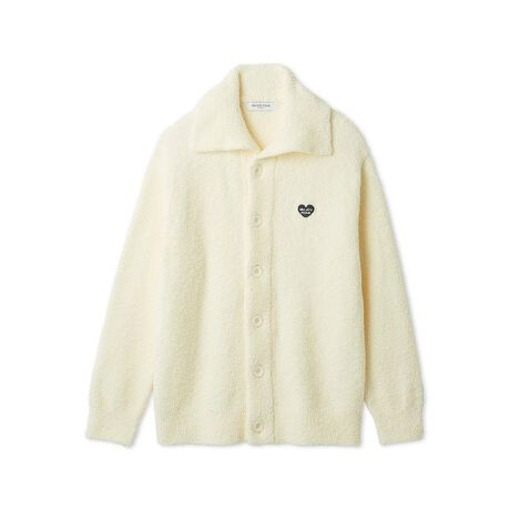 ロゴ入りのハート型サガラ刺繍がポイントになった、ふっくらと柔らかな’ベビモコ’のニットシリーズです。大きなリブ襟が温もりを伝える、トレンド感のあるカーディガン。ロゴ入りの大きなボタン付きで、羽織りとしても、1枚でシャツ風に着用してもおしゃれなアイテムです。甘すぎないハート型のサガラ刺繍を入れて、程良いアイキャッチにしました。色はソフトな印象のクリームと落ち着きのあるネイビーの2色展開。同シリーズのウエストウォーマーやルームシューズと合わせたり、同時期に展開するブロードストライプシリーズとコーディネートしてお楽しみください。ギフトにもおすすめです。