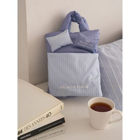 小花柄、ストライプ柄、ハート柄の3種類から柄を選べる、gelato pique sleepでは初登場のベッドサイドポーチです。サイドに付いたスナップボタンを外して広げると、内側は複数のスリットポケットになっています。ヘアブラシやファブリックスプレー、リモコンなど、散らかりがちなベッド周りの小物をまとめて収納可能。同シリーズの寝具と揃えれば、お気に入りのぬいぐるみとお揃いのインテリアコーディネートが完成します。色は小花柄のアイボリー、ストライプ柄のブルー、ハート柄のピンクの全3色を揃えました。ギフトにもおすすめのアイテムです。