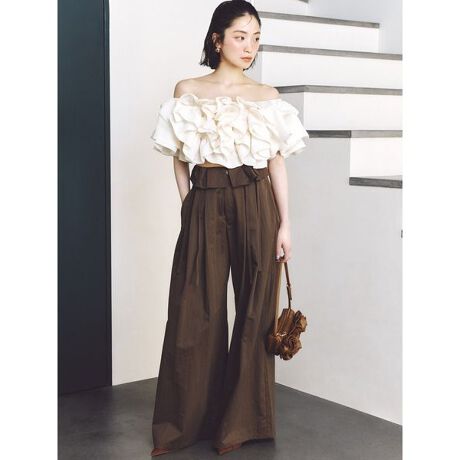 ウエストの折り返しデザインが印象的なトレンド感のあるワイドパンツが登場。