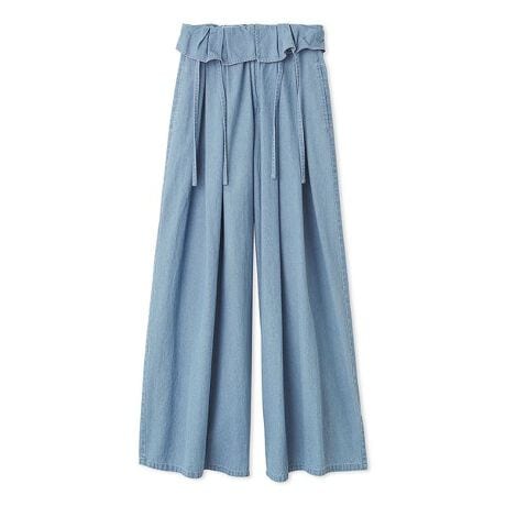 ウエストの折り返しデザインが印象的なトレンド感のあるワイドパンツが登場。