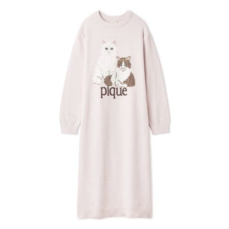春の訪れを感じさせる、明るいピケカラーをまとったキャットジャガードのシリーズです。ロングヘアの猫たちをジャガードで大きく描いた、軽やかな‘エアリーモコ’素材のワンピース。くるぶし上の長めの丈感なので、まだまだ寒さが残る春先まで1枚でゆったりとお楽しみいただけます。色はイエローとピンク、ブルーの3色展開で、特にイエローのボディには、従来のキャットシリーズには登場しなかったミルキーなキャメルカラーのハチワレ猫をデザインしたのがポイントです。同シリーズのソックスやブランケットと合わせたり、猫の日に向けてのギフトなどにもおすすめ。同時期に展開するキャット柄の寝具シリーズとコーディネートすれば、モフモフの“猫まみれ”なおうち時間をお楽しみいただけます。