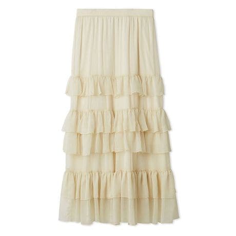 <b>【段差フリルが華やかに揺れるティアードロングスカート】</b>