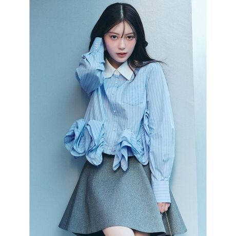 <b>【裾の立体的なラッフルフリルディテールがアクセントのシャツ】</b>