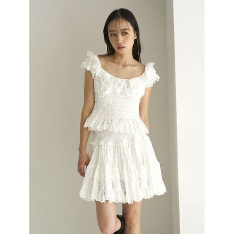 ボリューム感のあるコットンレーステープをティアードデザインで贅沢に取り入れた華やかなコットンフリルスカショーパンがお目見え。