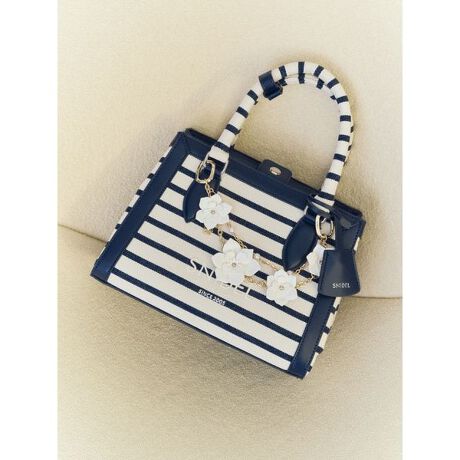 <b>【マリンな雰囲気のネイビーとボーダー柄が加わった、トレンド感満載な人気のSNIDELロゴ入りバッグ】</b>