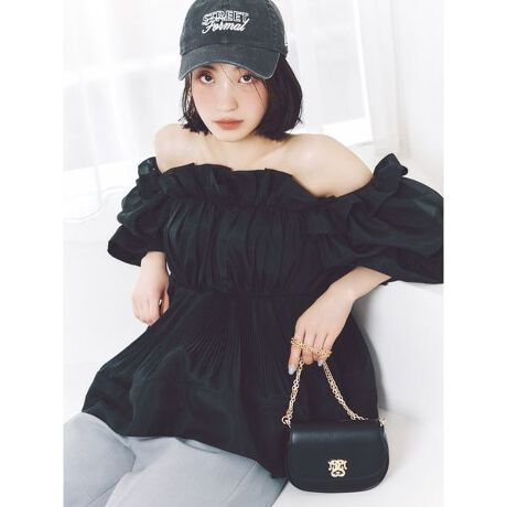 動くたびにふわりと軽やかにフリルや裾のペプラムが揺れて華やかな印象です。