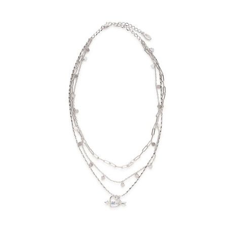 異なるデザインと長さのチェーンを組み合わせた三連ネックレスは華奢さと存在感を兼ね備えたアイテム。小さなハートが連なるチェーンや矢の刺さったハート形のチャームにクリスタルを添えたデザインで可愛らしさと華やかさを演出。反射が美しいスエッジチェーンや平たいデザインチェーンが首元に動きを加えます。長さ調節が可能なアジャスターチェーンは、先端に付いたロゴプレートがさりげないアクセントに。ロゴ入りの小サイズのボックス付き。