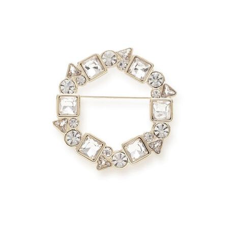 〇△□のビジューと不揃いなビジューをあえて品よく並べて、華やかなビジューサークルブローチに仕上げました。