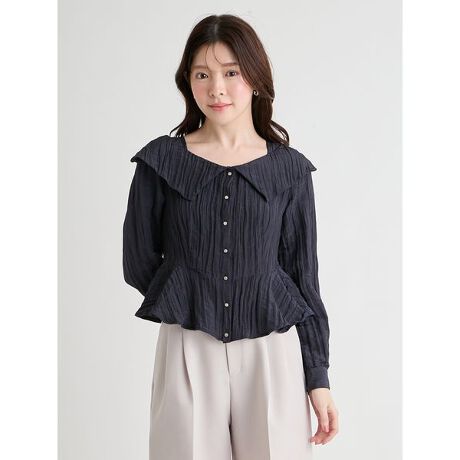 ショート丈のペプラムシルエットは裾のフレアが軽やかに揺れ、女性らしい華やぎを添えます。
