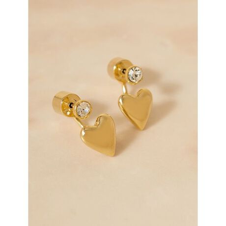 <b>【ぷっくりハート型キャッチと、煌めきストーンのポストを組み合わせた新鮮ハートモチーフピアス】</b>