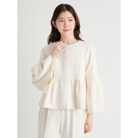 袖と裾にタックとギャザーを入れた華やかなペプラムジャケット。