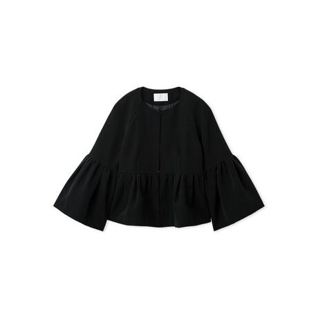 袖と裾にタックとギャザーを入れた華やかなペプラムジャケット。