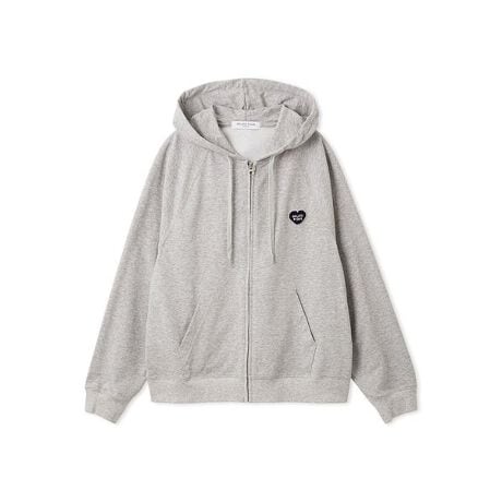 ロゴ入りのハート型サガラ刺繍をあしらった、同時期のニット&布帛アイテムとリンクしたデザインの裏毛シリーズです。オーバーサイズ気味のラグランスリーブで、リラックスした着用感をお楽しみいただけるジップパーカ。胸元の甘すぎないハートのサガラ刺繍がさりげないおしゃれ感を醸し出し、Tシャツ等の羽織りにぴったりです。吸水速乾性のある糸を用いた裏毛素材なので、春先の暖かくなる時期にもさらっとした肌触り。色はベーシックなクリーム、グレー、ネイビーをご用意しました。同シリーズのロングパンツと組み合わせたり、ワンマイルのちょっとしたお出かけにもおすすめです。