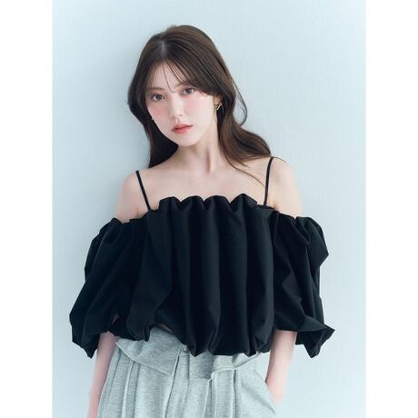 <b>【ふんわりバルーンフォルムのクロップド丈オフショルタックブラウスでトレンド感を取り入れて】</b>