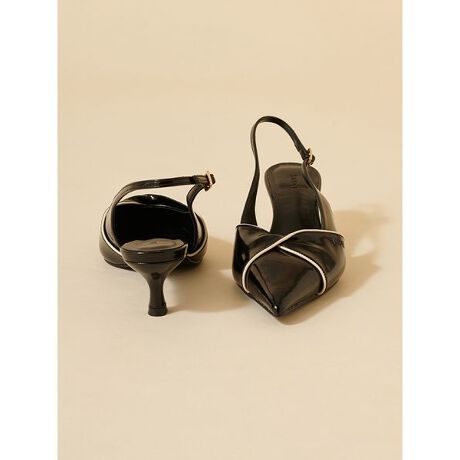 ポインテッドトゥの甲に、立体感のあるひねりリボンディテールを加えた、バックストラップデザインのツイストリボンパンプスが届きました。