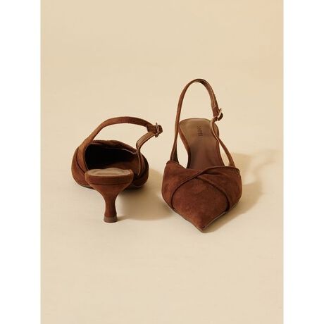 ポインテッドトゥの甲に、立体感のあるひねりリボンディテールを加えた、バックストラップデザインのツイストリボンパンプスが届きました。