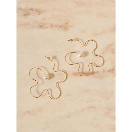 C:華奢なメタルラインが抽象的なフラワーシルエットを描いたエレガントなピアスです。