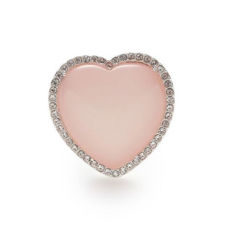 膨らみのあるボリュームハートが可愛らしい、存在感抜群のリング。ハート部分は天然石を使用しており、ひとつひとつ色味や柄に個性が出るのが魅力。ハートの縁には極小ストーンをあしらい、さりげなくエッジの効いたアクセントをプラス。手元をぱっと華やかに彩る、遊び心のあるデザインです。