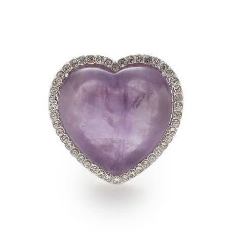 膨らみのあるボリュームハートが可愛らしい、存在感抜群のリング。ハート部分は天然石を使用しており、ひとつひとつ色味や柄に個性が出るのが魅力。ハートの縁には極小ストーンをあしらい、さりげなくエッジの効いたアクセントをプラス。手元をぱっと華やかに彩る、遊び心のあるデザインです。