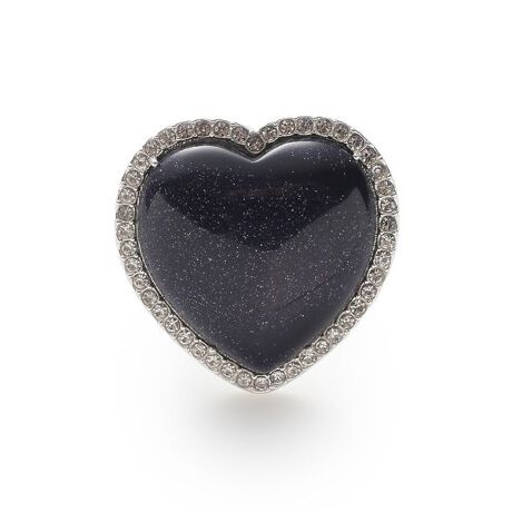 膨らみのあるボリュームハートが可愛らしい、存在感抜群のリング。ハート部分は天然石を使用しており、ひとつひとつ色味や柄に個性が出るのが魅力。ハートの縁には極小ストーンをあしらい、さりげなくエッジの効いたアクセントをプラス。手元をぱっと華やかに彩る、遊び心のあるデザインです。